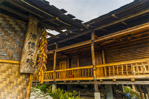 而福貢一帶,氣溫高、空氣濕度大,居民多采用防潮通風性能更好的竹篾房,其結(jié)構(gòu)以木為柱,竹席為墻為樓板,頂蓋木板或茅草。木楞房,現(xiàn)在已作為一種有形和無形的文化遺產(chǎn),體現(xiàn)出怒族同胞多年的生活智慧,怒族民居建筑,也蘊涵著傳統(tǒng)文化中最深刻的根源,保留著民族文化最原生的狀態(tài)。