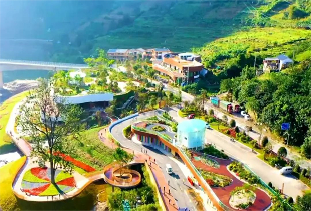 小沙壩服務(wù)區(qū)像是土地中自然“生長出來”一般,上可平接美麗公路,下可直達江畔景觀,形成優(yōu)美的屋頂花園和濱江步道,成為怒江大峽谷一張新的靚麗名片,這里也是怒江美麗公路的一站,這條在2019年底建成通車的公路,是以“中國一流、世界知名”的標準建成,“公路+綠道”的模式也是一項創(chuàng)新的工程。
